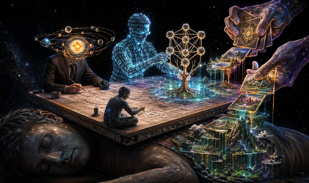 La astrología es el escenario — describe los ciclos en movimiento. La Numerología describe el ciclo en que estás operando. La Cábala es el plano del arquitecto — organiza la estructura completa de la consciencia. Y el Tarot es la herramienta que integra los tres en una conversación directa con tu interior.